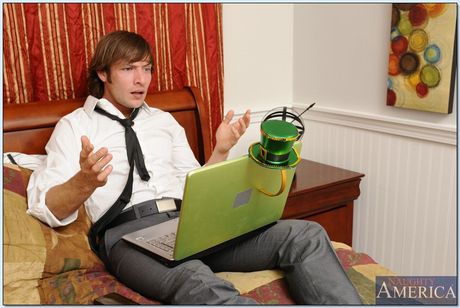 Skinny redhead Marie McCray has sex with a leprechaun in her bedroom