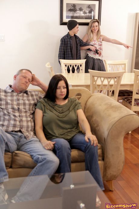 Blonde teen Lexi Lore gets caught having sex with her stepdad in a kitchen