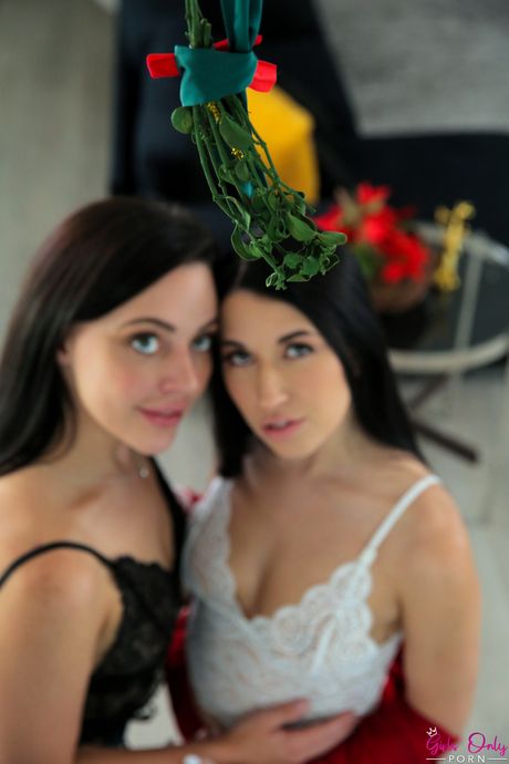Lesbian girls Alex Coal & Whitney Wright have sex on a Christmas sofa
