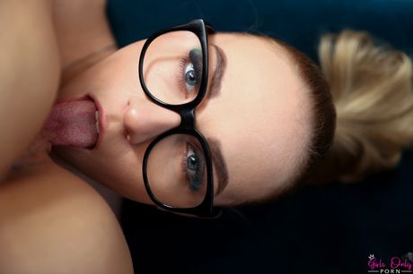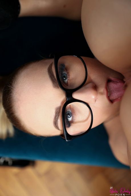 Office lesbians Sybil & Jenny Wild have sex on a couch in glasses