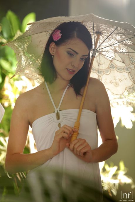 Pretty teen Lien gets her shaved pussy fucked outdoors