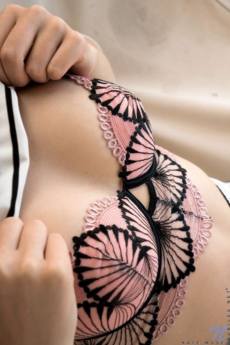 Blonde beauty Kate Muse strips off her bra and thong before touching her pussy