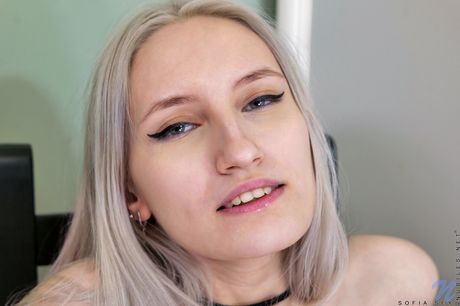 Blonde model Sofia Sey removes her clothes and heels to get naked