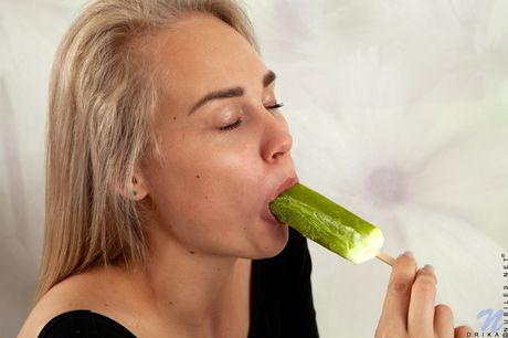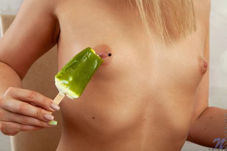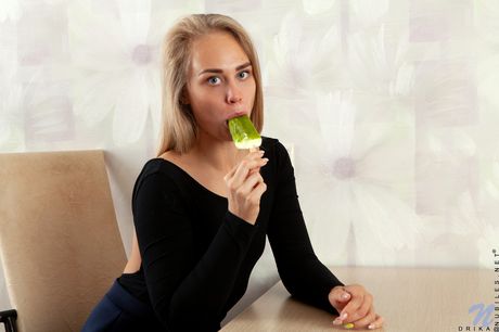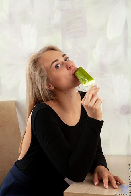 Ligh-haired teen Drika removes her clothes and popsicle before pussy play