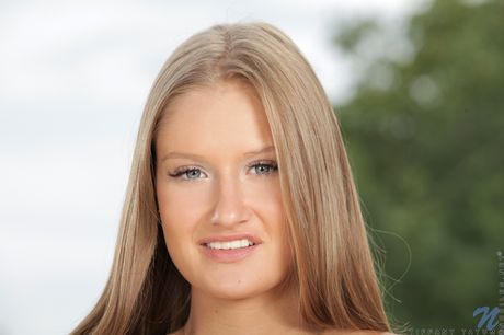 Ligh-haired teen Tiffany Tatum removes her bikini before fingering her pussy