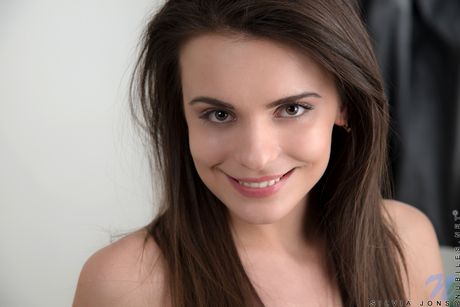 Lovely teen Silvia Jons removes her bra and thong before fingering her pussy