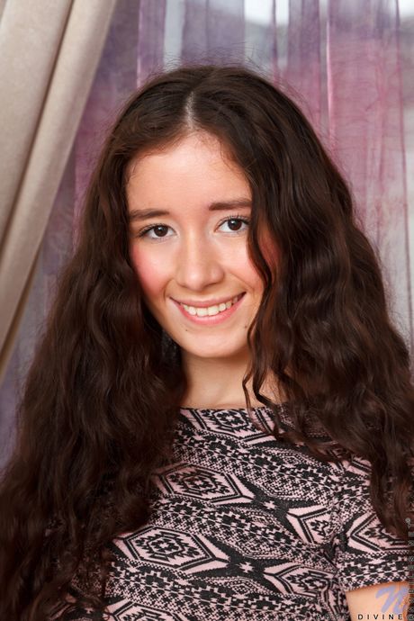 Petite teen Adel Divine removes her bra and panties before masturbating