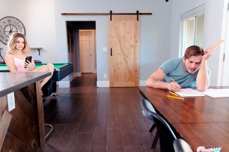 Redheaded teen Molly Little has sex with her stepbrother on a pool table
