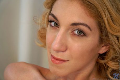 Pretty teen Milana Laurence fingers her pussy after getting naked