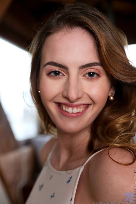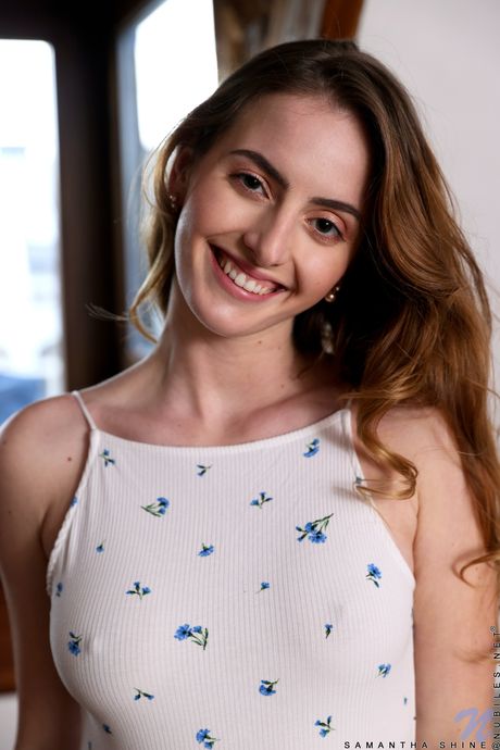 Redheaded teen Samantha Shine strips off her lingerie before touching her pussy