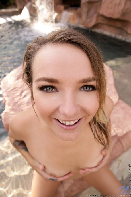 Sexy blonde Carmen Callaway strips off her bikini and masturbates in the pool