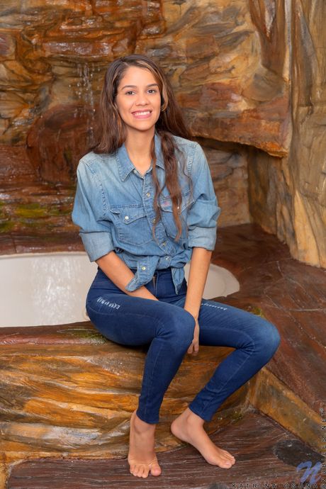 Skinny Latina Katrina Osuna shows her small boobs and rubs her pussy