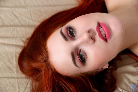 Skinny redhead Charlie Red masturbates with a vibrator on her bed