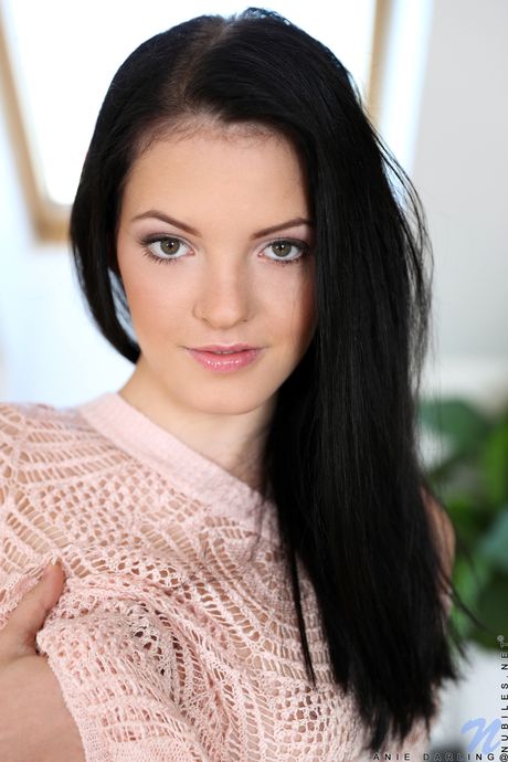 Skinny young girl Anie Darling finger spreads her tight pink pussy on a bed