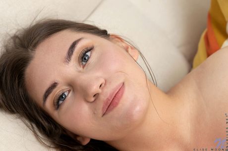 Solo girl Elise Moon shows off her bald pussy after getting naked