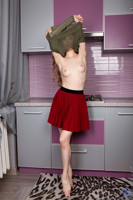 Thin teen Milena Tissen removes a black dress before showing her pink pussy