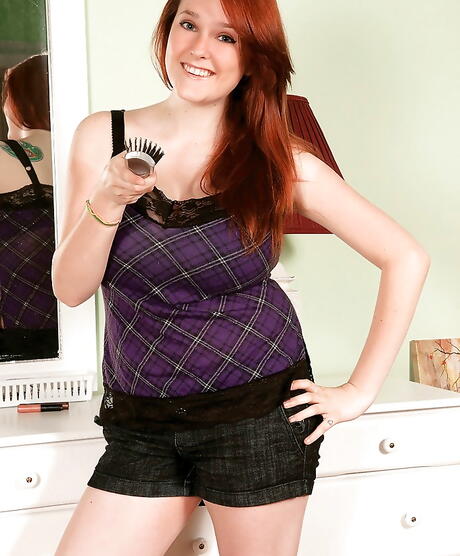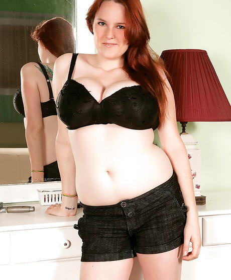 Peachy american hottie Catt Green in sexy undies bares big hooters and pussy