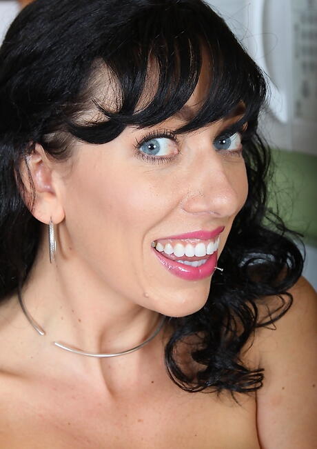 Peachy american milf Alia Janine in tight jeans reveals big titties and vagina