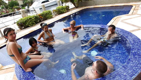 Peachy american pornstar Julia Ann in hot bikini drilled in her shaved pussy after hot suck near the pool