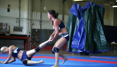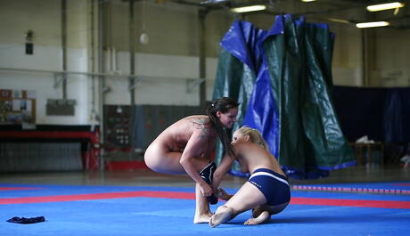 Peachy milfs Brandy Smile and Sheila Grant in sexy shorts licking pussies during hot lesbian sex