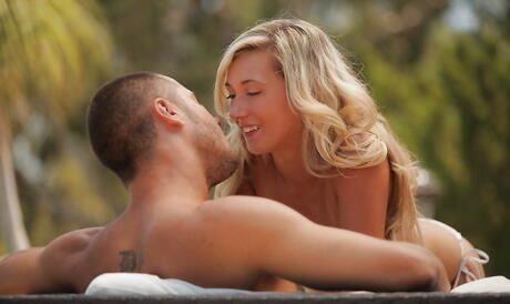 Rangy american blonde youthful Lilly Banks in bikini fucked in bald pussy after sucking cock