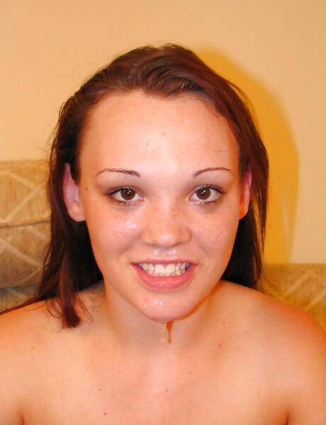 Rangy american brunette teen Krystal Jordan sucking on huge cock and takes a cum blast on her face