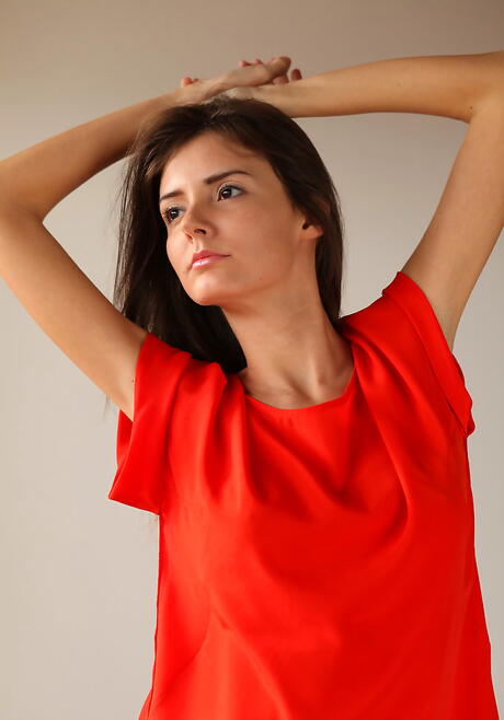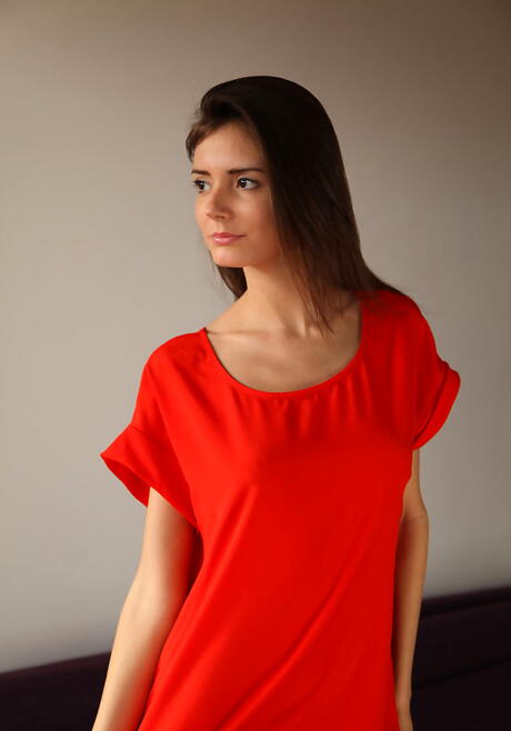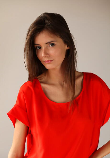 Rangy american brunette teen Sunshine exposing her butt and shaved pussy