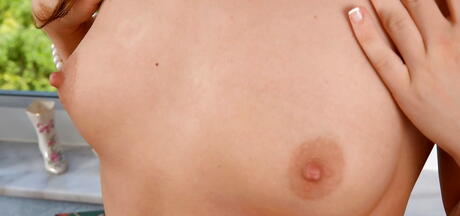 Rangy american teen Aurora Monroe exhibits her ass in hot stockings and masturbates