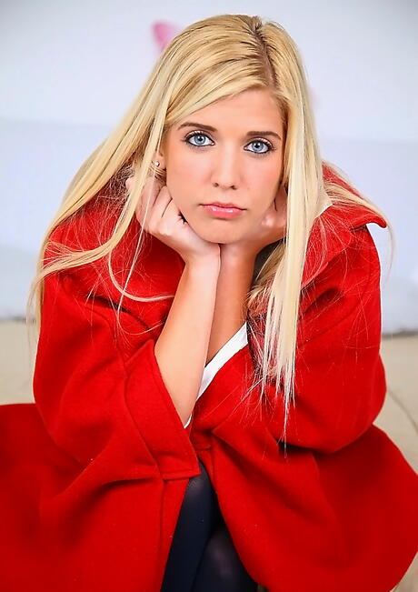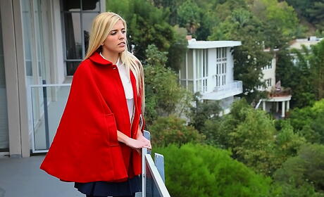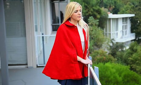Rangy american teen Carmen Monet exposing her ass and shaved pussy outdoor