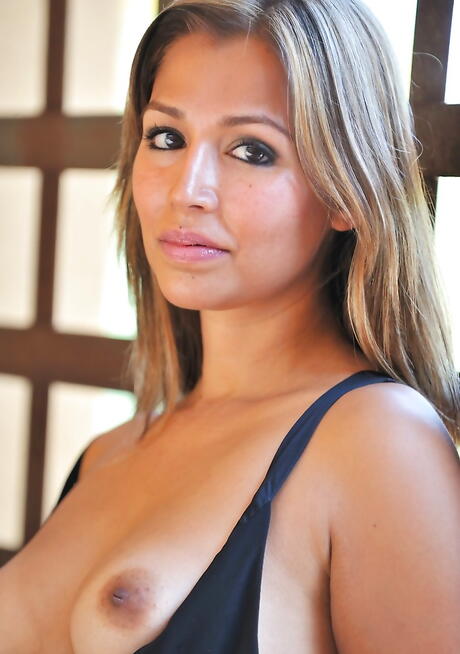 Rangy blond babe Layla in fancy skirt bares small tits and spreads her legs outdoor
