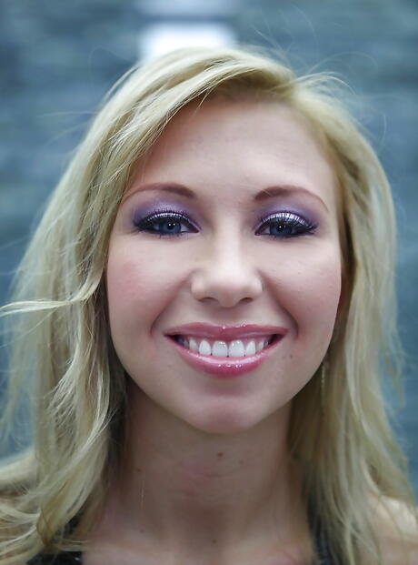 Rangy blonde babe Rosemary Moyer exposes small tits and spreads her legs
