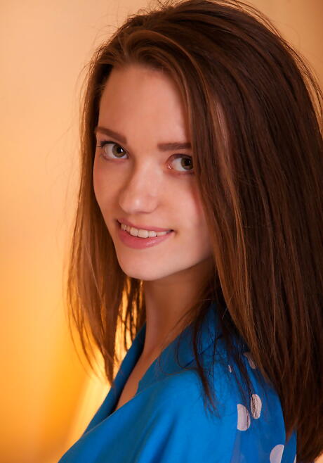 Rangy brunette teen Eliav bares tiny tits and spreads her legs