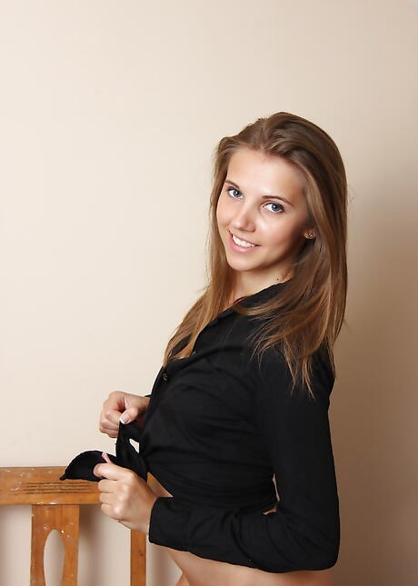 Rangy brunette young Kira reveals tiny tits and masturbates