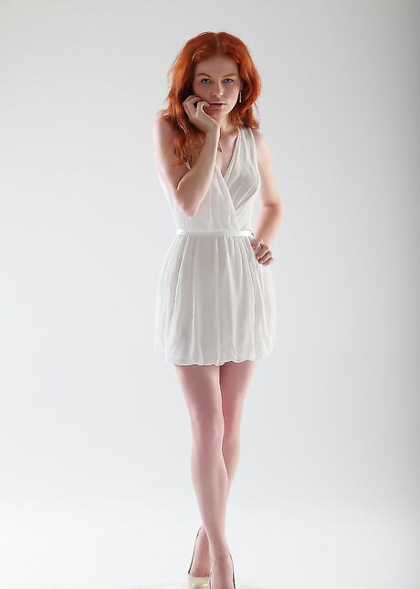 Rangy czech red-haired teen Barbara Babeurre baring tiny tits and spreading her legs