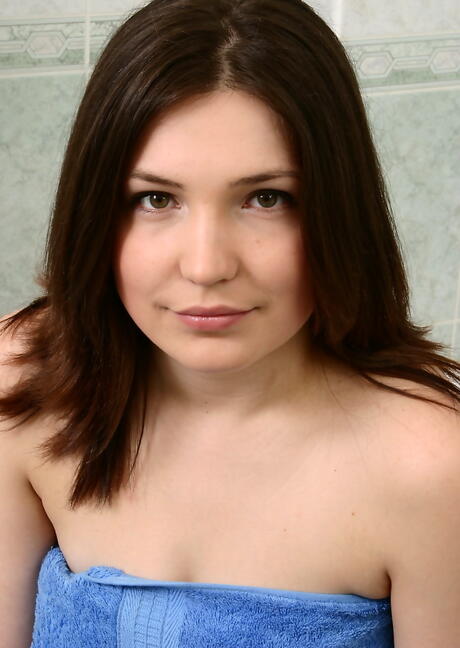 Rangy dark-haired teen Svetlana showing big boobies and jerking off in bathroom