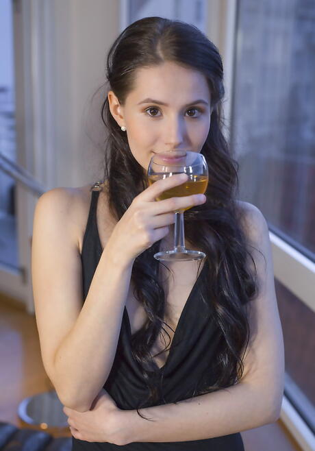 Rangy dark-haired youthful Vanessa Angel showing small tits and shaved pussy
