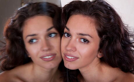 Rangy latin dark hair cutie Helen H unveiling tiny tits and bald pussy