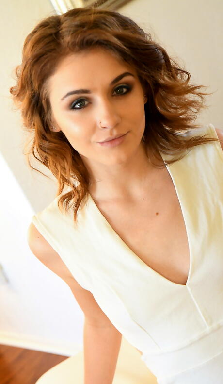 Rangy red-haired teen Rosalyn Sphinx in skirt showing small tits and spreading her legs