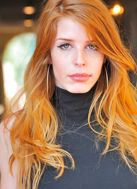 Rangy redhead young Alexia Silvers bares big tits and toys her twat outside