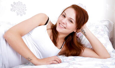 Rangy redheaded teen Lilly May in hot underwear undresses and unveils tiny tits