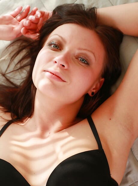 Rangy russian dark-haired teen Valery Von in sexy jeans revealing her ass and spreading her legs