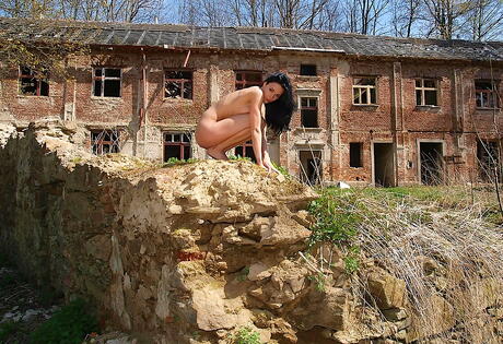 Rangy teen Gwen exposes big boobies and spreads her legs outside