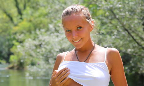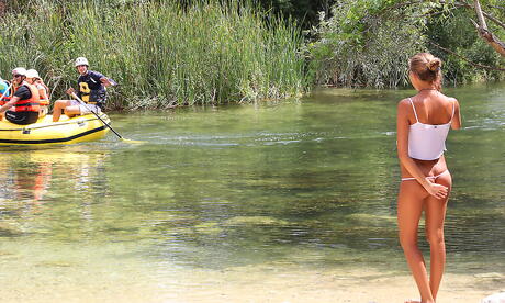 Rangy teen Katya Clover in sexy bikini exposing big boobs and butt outdoor