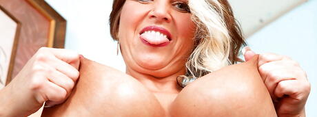 Round american milf Channel Sweets in underwear exhibiting big hooters and masturbating