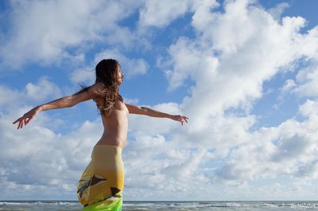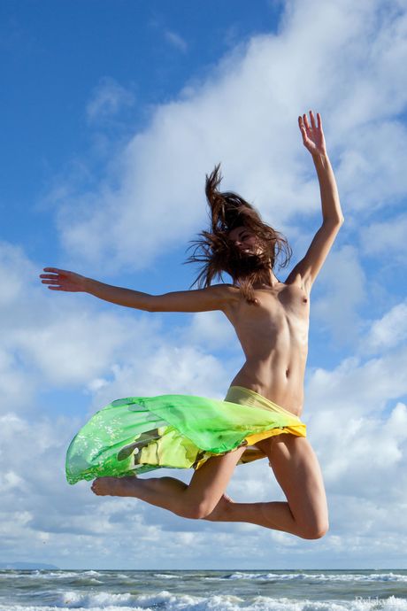 Barely legal girl Astrud strikes great nude poses on a sandy beach