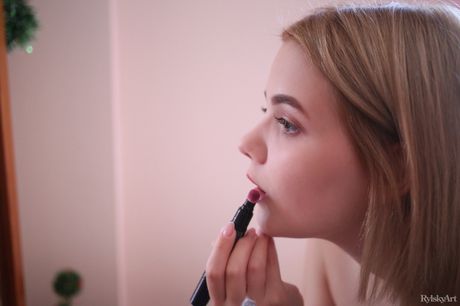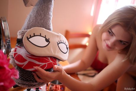 Blonde teen Chanel Fenn removes her socks to get totally naked