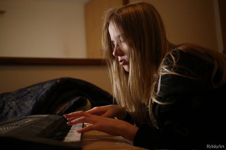 Blonde teen Delizi shows her beautiful body in the nude on a rocky outcrop