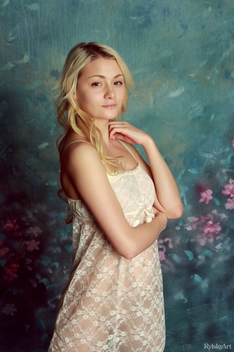 Blonde teen Welesa Wil goes naked on a kitchen counter