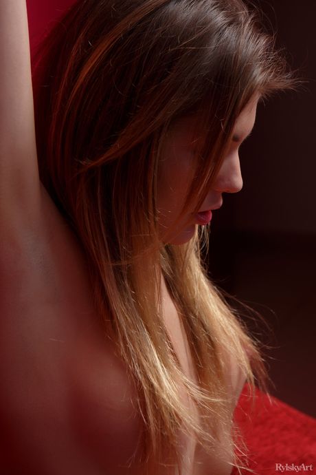 Brunette teen Monika Dee shows her beautiful body in red stockings