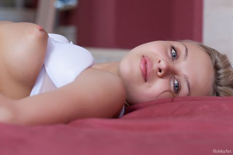Charming teen Luciana strips her black dress & shows her big tits & bald pussy